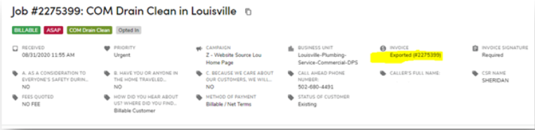 | A customer tells you they want to set up a billable account, what do you do? | email the sales team the customers job number, contact name, and make sure the email address and phone # for that person is on the account. They will follow up with the customer to get them the appropriate documents. Let the customer know that they will be contacting them. Our policy is that new customers are to pay for the first call, and we can get them set up for billing for future service. (Ted and Donna can override this, and it has to be documented in the job). |
