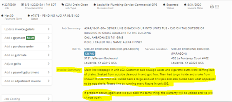 | An apartment called in and they have issues with the tub draining, what job type would you select? | COM DRAIN CLEANING |
